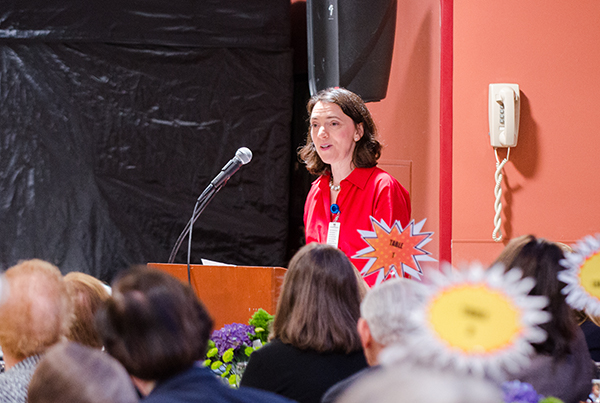 Wendy Froede, the volunteer program's director, addresses the Dinner's attendees.