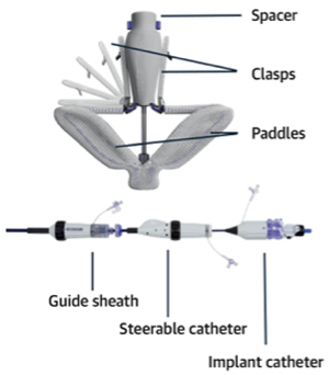 The PASCAL implant contains two broad paddles with clasps that can be simultaneously or independently maneuvered for tricuspid valve leaflet capture. (Credit: Edwards Lifesciences)