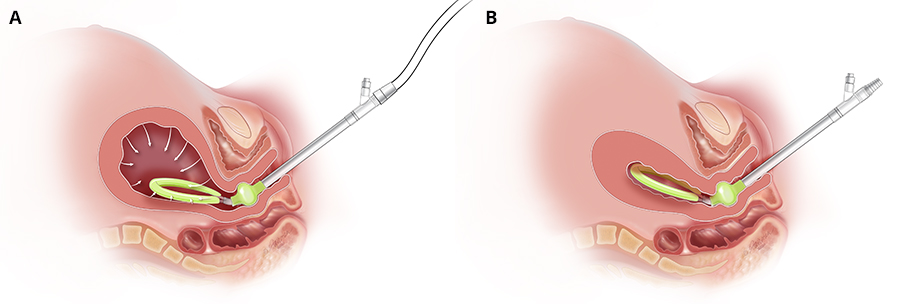 (A) Jada with vacuum being applied (B) Jada with uterus collapse (Courtesy of Organon)