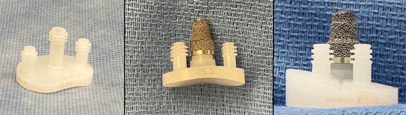 Enter the Alliance™ Glenoid, the first anatomic glenoid system to offer standard and half-wedge augmented hybrid implant options to treat posterior erosion with minimal bone removal, which was FDA approved in 2019. “The Alliance Glenoid has a hybrid design with a metal-backed peg attached to the plastic socket that retains the same thickness, so it’s not too thin and does not wear out early,” says Dr. Levine, co-developer of the system that maximizes the benefits of both metal and plastic. “The design offers the advantages of a metal backing with the titanium central post and peripheral pegs, which are cemented in the traditional style. One of the most common reasons for total shoulder arthroplasty failure is glenoid loosening. Our hypothesis is that this hybrid design will have longer durability and longer stability without loosening. Early short-term studies by John Sperling and Tom Duquin have been demonstrated outstanding results.”