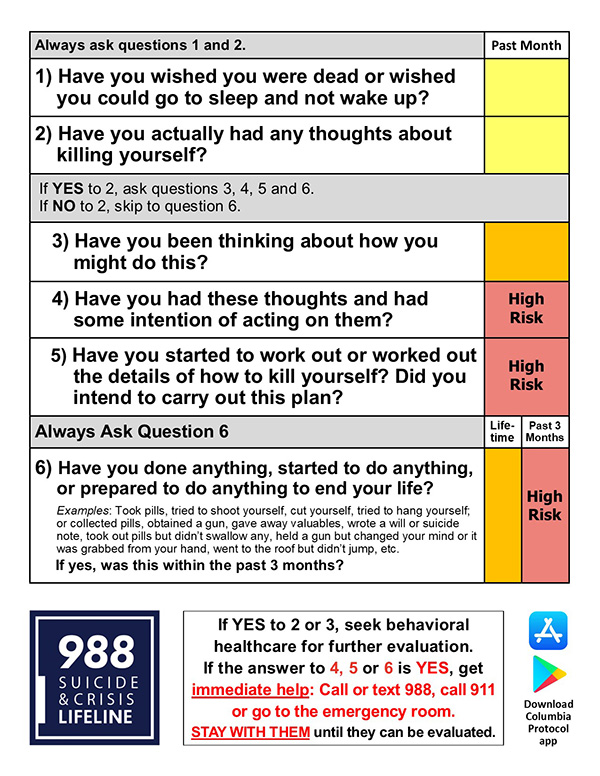 Columbia-Suicide Severity Risk Scale: A Common Method for Risk Detection