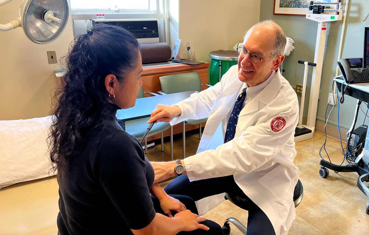 Weill Cornell Medicine team member Jaidee Purino and Dr. Joel Stein in a simulated stroke patient office visit