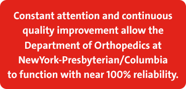 Constant attention and continuous quality improvement allow the Department of Orthopedics at NewYork-Presbyterian/Columbia to function with near 100% reliability