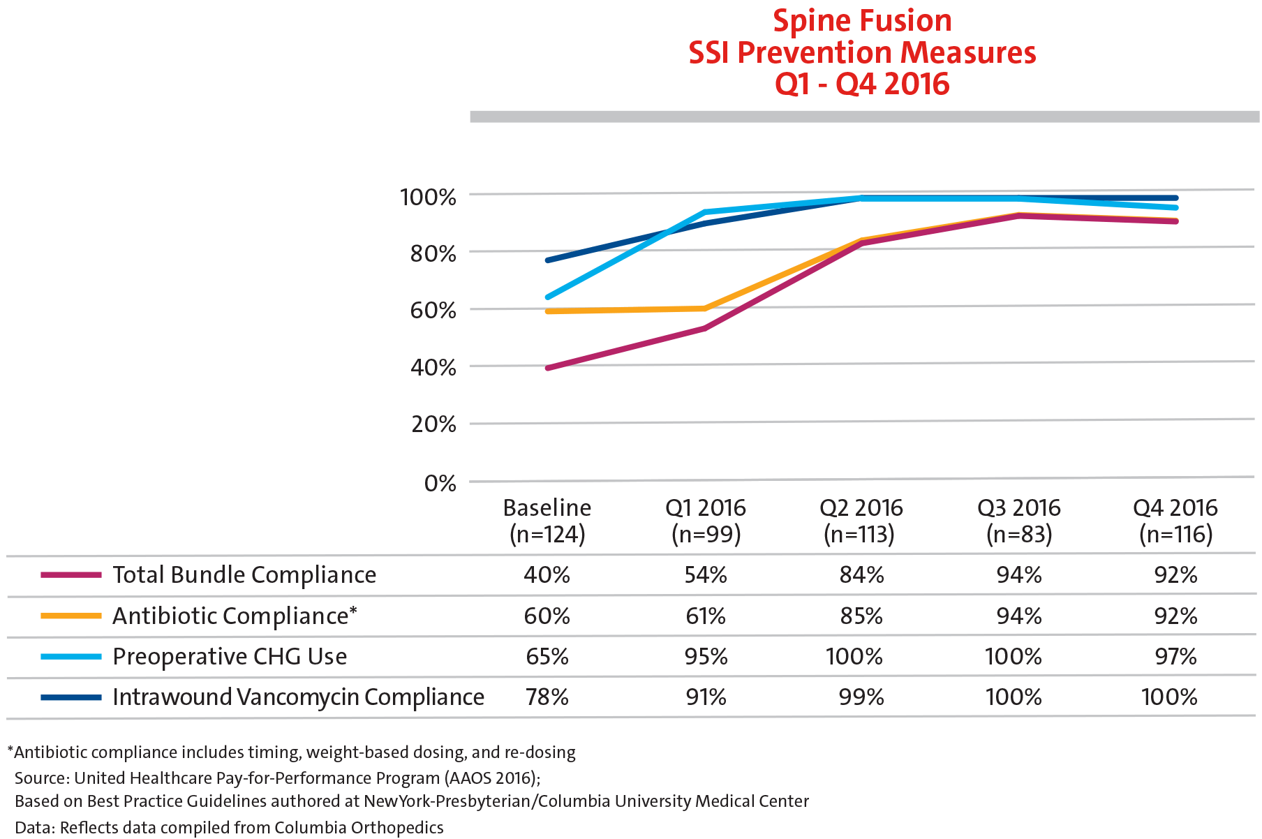 Preventing one single infection has dramatic effects on the patients, their morbidity, quality of life, and family unit. But it also has dramatic effects on healthcare costs. With an aspirational goal to have zero infections, our spine specialists have accomplished tremendous foundational work in this area through the implementation of: