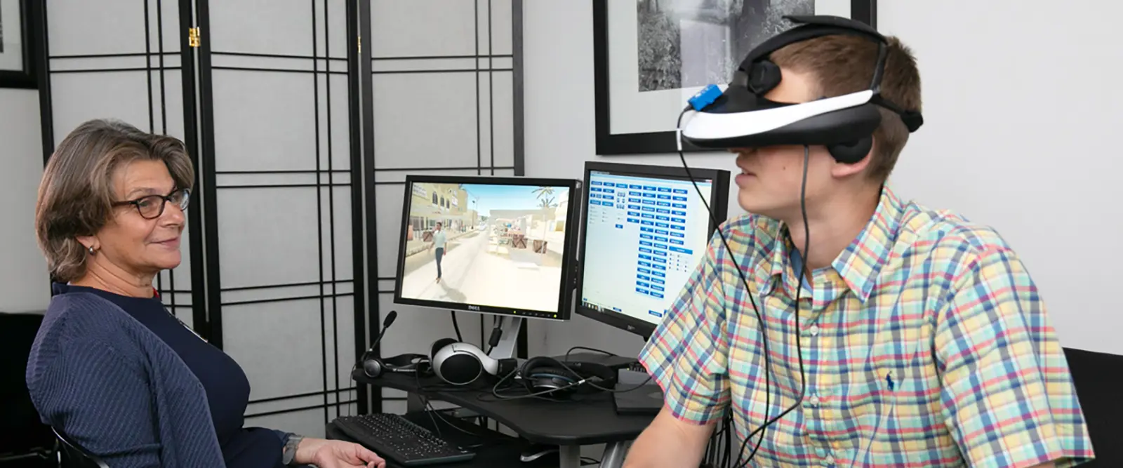 Many of the scenarios Dr. Difede uses can be customized. As the patient experiences the computer-generated environment using either a headset or a headset with controllers, they describe the traumatic experience to Dr. Difede (or a trained psychologist on her team) who is sitting nearby. She can see the virtual images on a computer screen and manipulate details. For example, in a combat scenario for Iraq War veterans, Dr. Difede can remove other characters from the environment if the person was alone at the time of the traumatic event, summon a sandstorm, create an explosion, or introduce the sound of shooting. She might even incorporate smells, like spices, into the treatment.