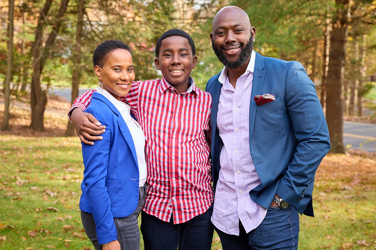 Jonathan, center, with his mom, Fabienne, and dad, JR. After completing gene-editing therapy in 2021, Jonathan can worry less about pain crises.