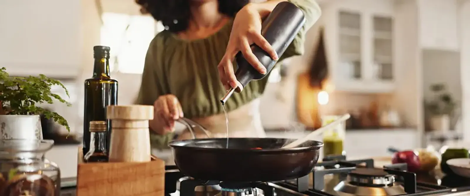 - Health conditions: For patients at risk for cardiovascular conditions and are choosing between types of fat, I recommend seed oils or vegetable oils over solid, saturated fats like coconut oil, lard, tallow, or bacon fat. For patients who need to follow a calorie-restricted diet or limited fat diet for medical reasons, they can opt for air frying or cooking with alternatives like water, broth, citrus juice, vinegar, or pureed beans or tofu.