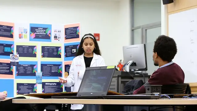 At the end of both the summer and academic year program, scholars share what they’ve learned by participating in a science fair-like expo, where they present to NewYork-Presbyterian/Columbia University Medical Center staff who have served as mentors, their peers in the program, their parents, and new scholars who will start the program in the fall.