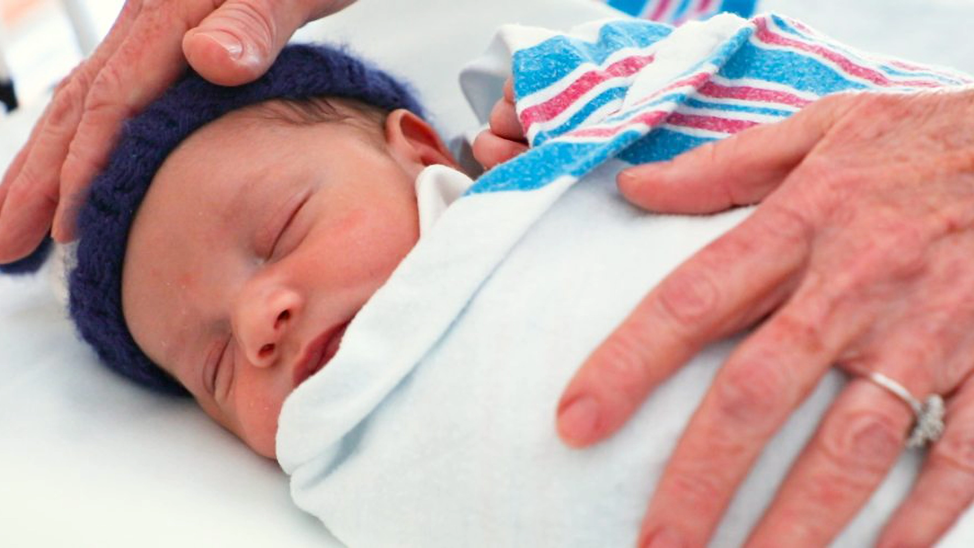 On this particular morning in the NICU, David is one of the lucky babies receiving Joan’s love and attention. Born at 31 weeks and 4 days and weighing just 3.6 pounds, David needed surgery to treat necrotizing enterocolitis, a condition in which bacteria invade the wall of the intestine, causing an infection. While the surgery two weeks after he was born went well, he still needed time to grow and gain strength before heading home. His mom, Johanna, had heard about “Grandma Joan” from the nursing staff and was eager to meet her.
