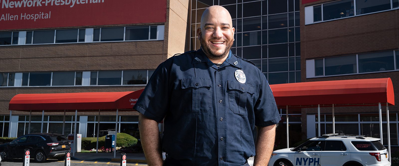 In July, Officer Raffoul was on duty at NewYork-Presbyterian Allen Hospital when someone came into the lobby saying a woman was giving birth outside the hospital’s entrance. Officer Raffoul immediately put on gloves and ran out to help deliver the baby, keeping mom and baby safe until medical staff arrived.