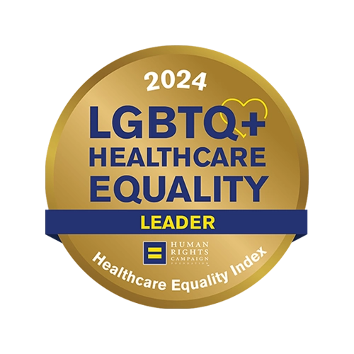 We encourage patients and visitors to share preferred pronouns, preferred names, and any and all requests for accommodation with us when checking in and at any time following check-in. Staff with rainbow flag insignias on their ID badges have completed LGBTQ+ sensitive trainings and are able to assist you with any questions that may arise. For convenience, All-gender restrooms are located throughout the main hospital. For directions to the nearest one, please ask at the information desk or a security staff person.