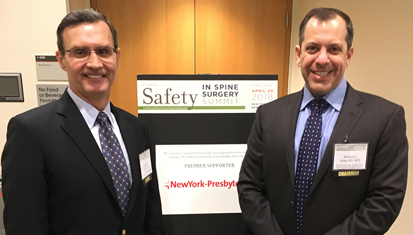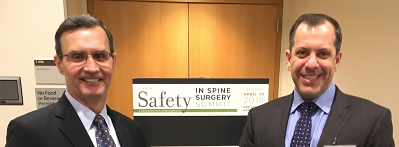 NewYork-Presbyterian hosted the 3rd Annual Safety in Spine Surgery Summit on Friday, April 20, 2018. The event brings together a diverse audience of spine surgeons, OR directors and hospital executives from across the nation to network and learn about the numerous safety and quality advances that are being made in the field. This year’s theme was “Toward New Rules of Engagement for an Increasingly Complex Spine World.” Dr. Michael Vitale (right), Chief of the Pediatric Spine and Scoliosis Surgery at NewYork-Presbyterian/ Morgan Stanley Children’s Hospital chaired the event and was joined by the event’s co-chair Dr. Lawrence Lenke (left), surgeon-in-chief of the Daniel and Jane Och Spine Hospital at NewYork-Presbyterian/Allen.