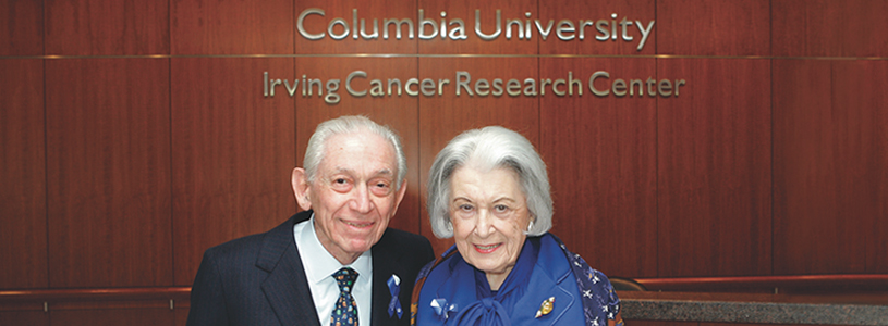 The Irving name has long been a familiar part of Columbia and the Columbia campus of NewYork-Presbyterian. The medical center is home to the Herbert Irving Pavilion, the Irving Cancer Research Center, the Irving Institute for Clinical and Translational Research, the Irving Radiation Oncology Center, the Irving Bone Marrow Transplant Unit, and the Herbert Irving Comprehensive Cancer Center, as well as a long list of named professorships, faculty chairs, and clinical and research facilities. The Irvings’ generosity began with their 1987 endowment of the Irving Scholars program for early-career clinical investigators.