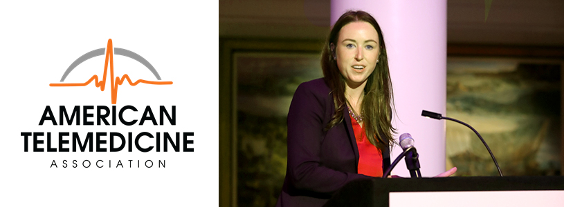 AMERICAN TELEMEDICINE ASSOCIATION logo next to a person speaking into a microphone