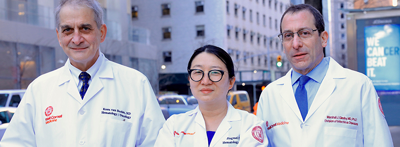 Stem cell transplant specialists Dr. Jingmei Hsu and Dr. Koen Van Besien and infectious disease specialist Dr. Marshall Glesby were the physician-scientists who led the NIH-funded clinical trial at Weill Cornell Medicine in collaboration with investigators at University of California Los Angeles, Johns Hopkins University School of Medicine and several other institutions.