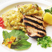 Grilled Salmon with Warm Mint Pineapple SalsaGF
