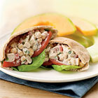 - Add a 1/2 cup of diced chicken mixture to each pita.