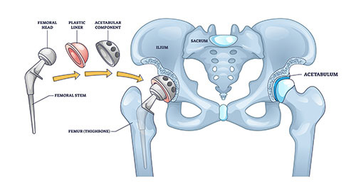 What is Hip Replacement Surgery?Hip replacement surgery, also known as hip arthroplasty, is a procedure where the bones that form your hip joint are removed and replaced with implants. Hip replacement surgery helps reduce pain and improve function, especially if the pain interferes with daily activities and nonsurgical treatments are ineffective. The most common conditions that cause damage to the joint requiring hip replacement surgery are osteoarthritis, rheumatoid arthritis, and osteonecrosis.