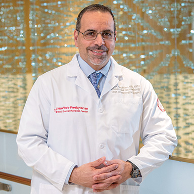A rescan indicated a piece of clot had lodged in one of the arteries in his brain. The neuro team then paged Athos Patsalides, MD, MPH, an interventional neuroradiologist at Weill Cornell, who was on call that evening. “I was having dinner with my team when we got the call,” says Dr. Patsalides. “We started to review the patient’s images on our phones as we hopped in a cab. We arrived at the hospital about 15 minutes later.”