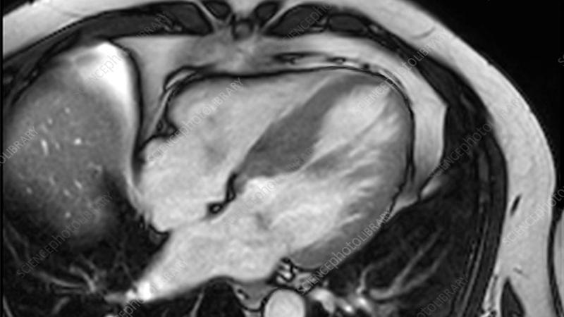 Axial MRI angiogram of cardiac hypertrophy of the interventricular septum