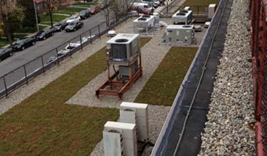 This section of the green roof is carefully placed around mechanical equipment.