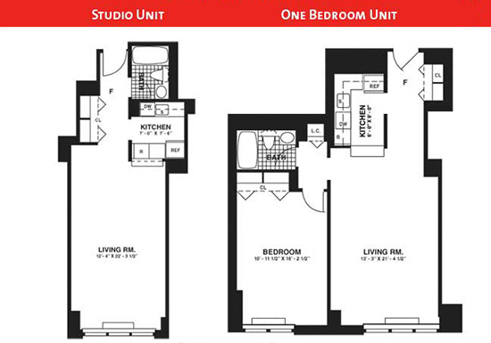 - Apartment units range from studios to three bedrooms with parquet floors.