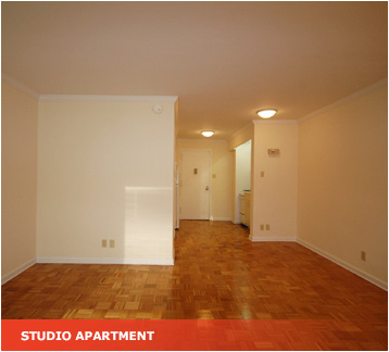 - Apartment units range from studio to three bedrooms with parquet floors.