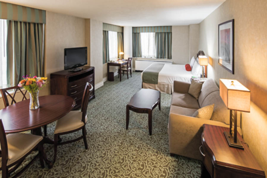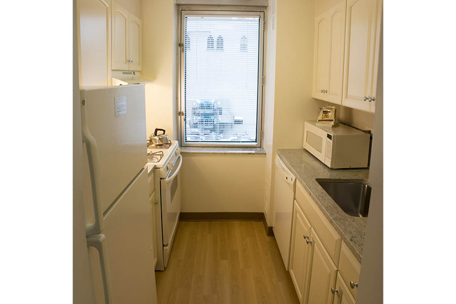 The NewYork-Presbyterian Guest Facility at The Helmsley Medical Tower offers temporary accommodations for hospital patients and their families and caregivers. Each spacious, furnished studio or one-bedroom apartment offers cable TV, complimentary Wi-Fi, a fully equipped kitchen, living/dining combination, one king or two full-size beds and daily housekeeping service. Rates are based on layout, type of bedding and length of stay and range from $293-$383 per night.