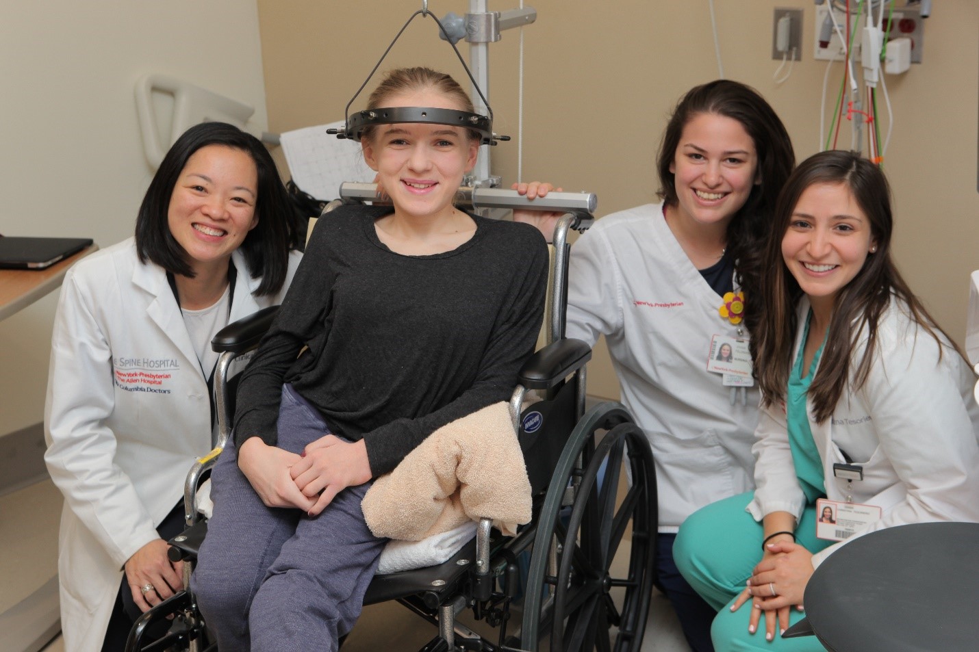 Lenke's plan to straighten her spine had multiple phases. First, Dezhnyuk spent six weeks in the NewYork-Presbyerian Och Spine Hospital in a halo — a bracket around her skull connected to a